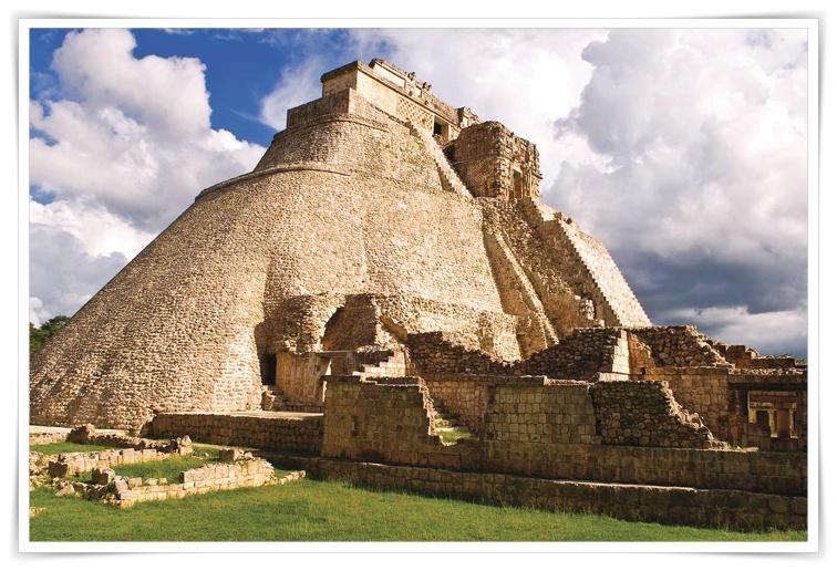 El templo del adivino tiene una plataforma elíptica, y su forma es de cono. La construcción del templo está formada por tres secciones escalonadas, símbolo de las tres montañas, y en la parte mas alta se encuentra un templo. Uxmal fue declarada Patrimonio Cultural de la Humanidad por la UNESCO en 1996. Junto con Chichen Itzá y Mayapán.