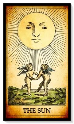 Vamos ahora a estudiar el ARCANO 19 DEL TAROT. Jeroglífico, un Sol radiante y dos hermosos niños que se dan la mano.
